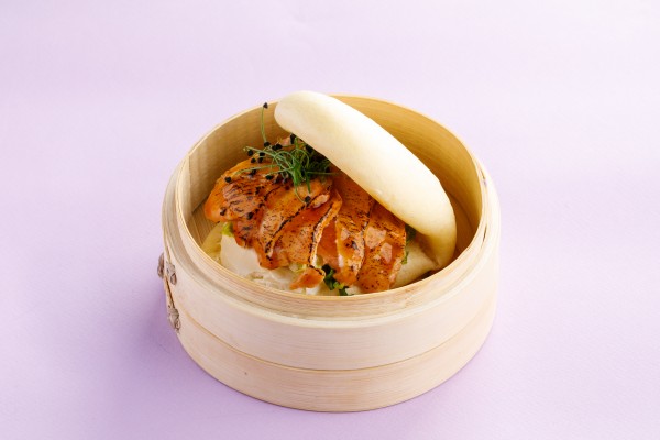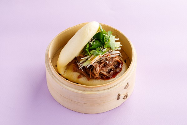Бао с томлёной уткой по-пекински с огурцом и соусом хойсин