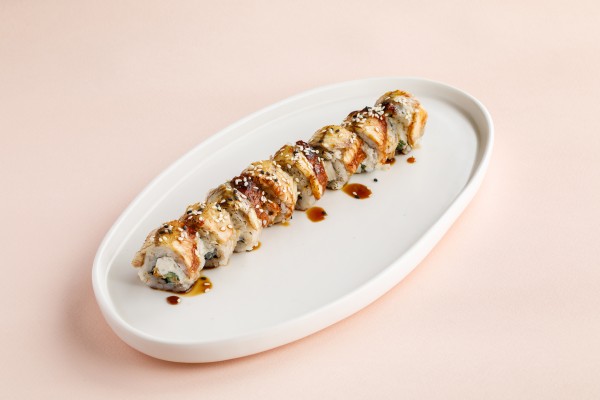 Бао с опалённой форелью со сливочным кремом и соусом унаги
