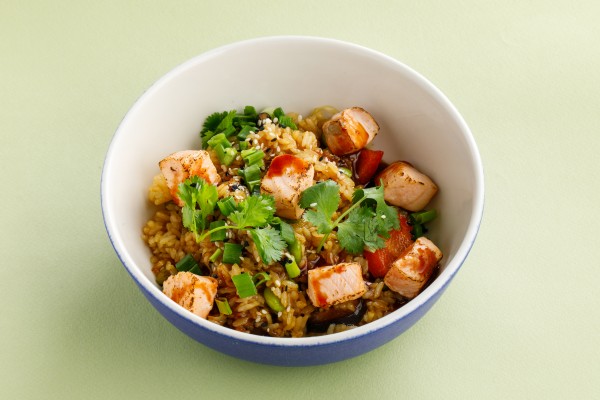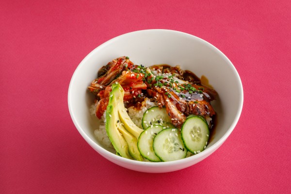 Боул с угрём, капустой кимчи, авокадо и соусом унаги