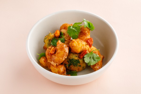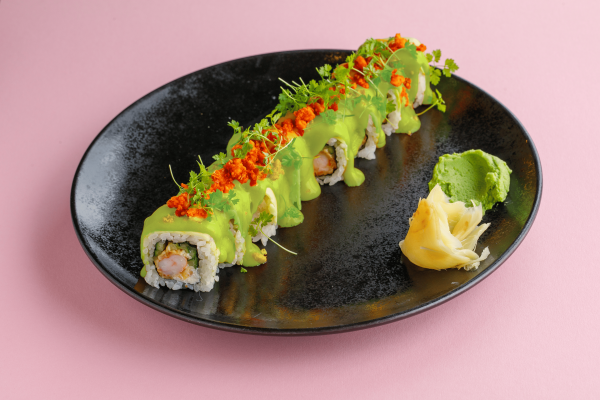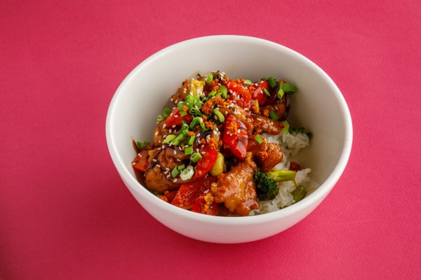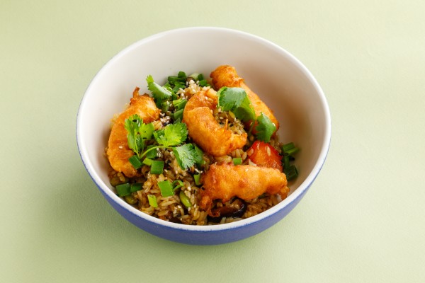 Донбури с креветками темпура, авокадо и соусом свит чили